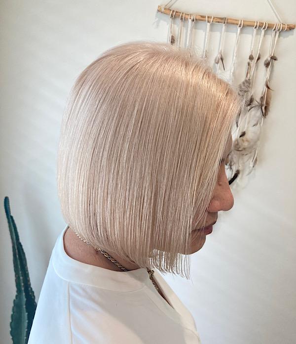 繊細なグラデーションと陰影を効かせたデザインで、立体感と透明感を演出。 2回のブリーチでしっかりと明るさを出しながら、Shadow Rootsで根元を自然に馴染ませ、上品で落ち着いた仕上がり。