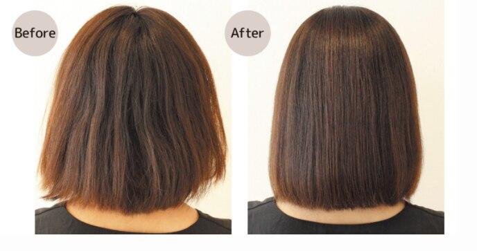 リケラプラスとは、ダメージやエイジングなどで弱くなった髪のケラチン骨格・CMC骨格を補強する施術です。髪がしなやかになり手触りもよくなります。